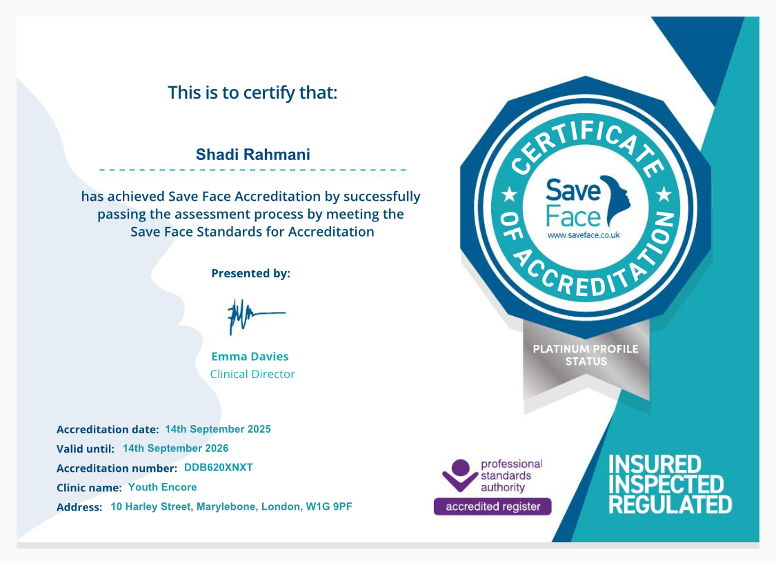 Welcome to Youth Encore — a trusted aesthetics clinic on Harley Street, London. Our approach blends medical expertise with a deep understanding of natural beauty, helping you achieve radiant, age-appropriate results through non-surgical aesthetic treatments tailored to you.